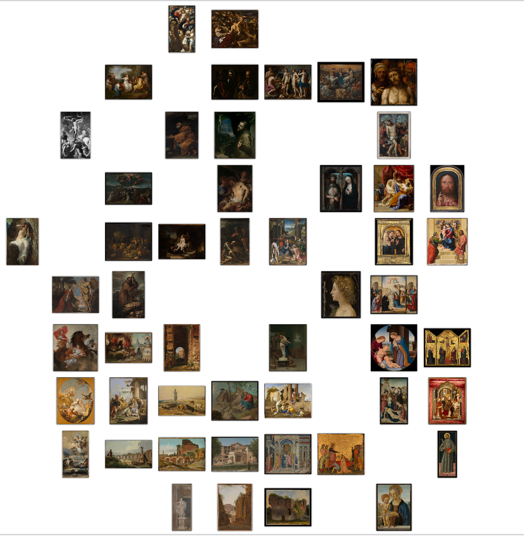 For my project, I chose to use around 35 paintings from the Metropolitan Museum of Art tied to classical antiquity-with imagery or context involving the Romans/Greeks/or early Christ. The results varied based on the different data sets being used. The Google V3 data, for example, seemed to be the most thematic and detailed clustering as it was able to recognize and group together images showing the suffering of Christ. Other data sets recognized things such as a set of paintings that all had a gold frame, a set of landscapes, and number of people depicted, and shadows. Orange is very practical in the fields of History, fine arts, and museum studies. Orange can be used to pick out visual themes and messages in political propaganda through its clusters or to see how the works of a single artist may differ in style. It is also just fun to mess around with! Perhaps you could take pictures of yourself and see how it clusters based on facial expressions or lighting or style!